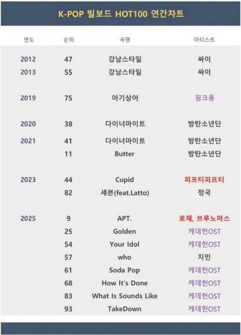 지민이 대단한게 뭐냐면 소속사가 해주는 광푸쉬와 라디오 페이올라 없이 무려 솔로로ㄷㄷ 연간 57위를 이뤄냈다는점임 심지어 군백기에 낸거라 활동도 못한곡으로ㅋㅋㅋㅋㅋㅋ
