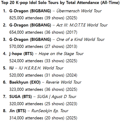 ㅇㅇ 국내선 스타디움급에서 하는건 아이유뿐