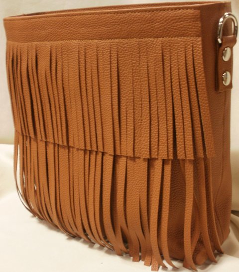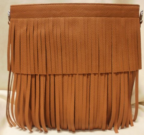 탄컬러 오플 엠보싱 천연 가죽으로 제작한 프린지 디자인(술)숄더 백입니다.(마디샤가죽공예)