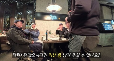 가차없이 바로 옆 테이블 제작진들에게 다가가 리뷰 요청하심 ㅋㅋㅋㅋㅋ