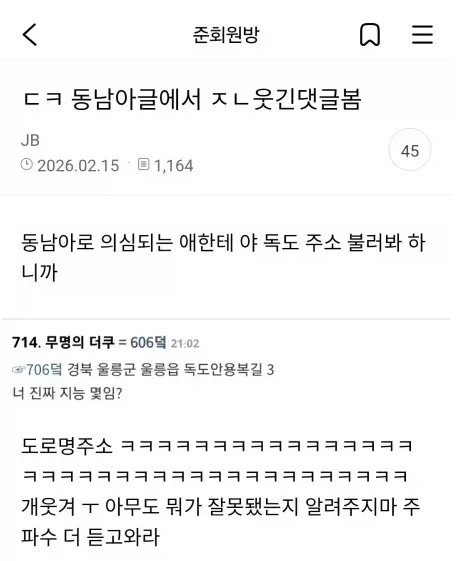 독도주소 알고있는 사람이면 이상하긴하네 ㅋㅋㅋㅋ