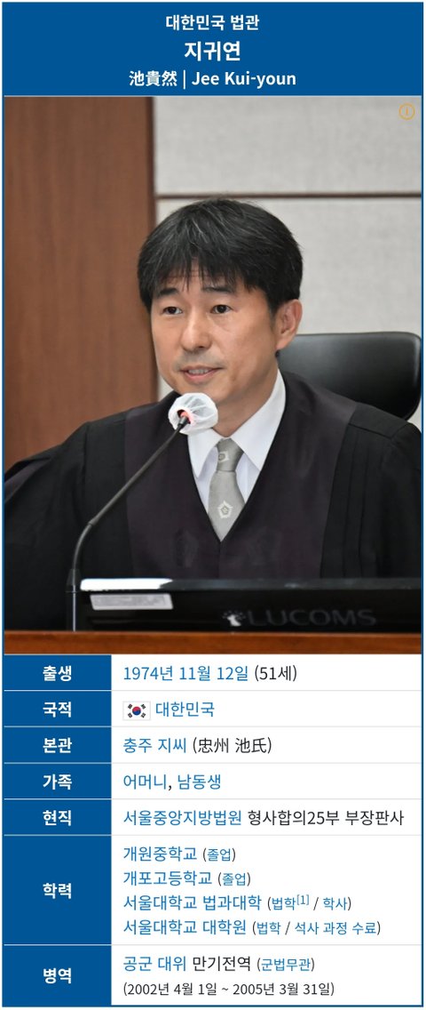 (사진1 설명) 지귀연(池貴然, Jee Kui-youn) 대한민국 법관 <출처: NAVER 나무위키>