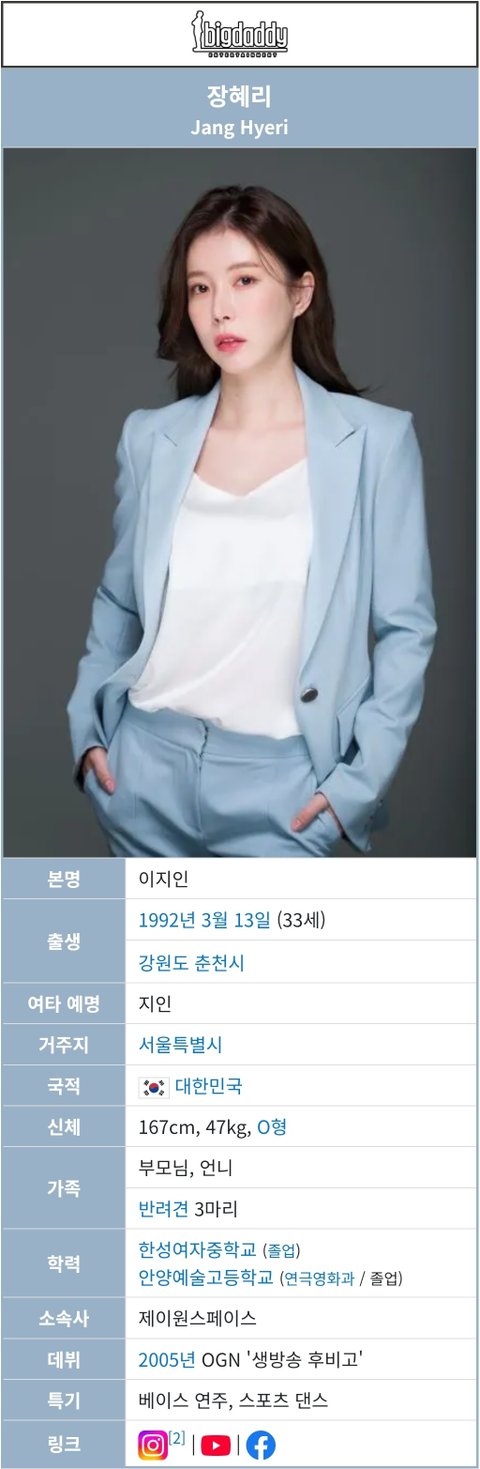 (사진2 설명) 장혜리(Jang Hyeri) 대한민국의 가수, 배우, 방송인 <출처: NAVER 나무위키>