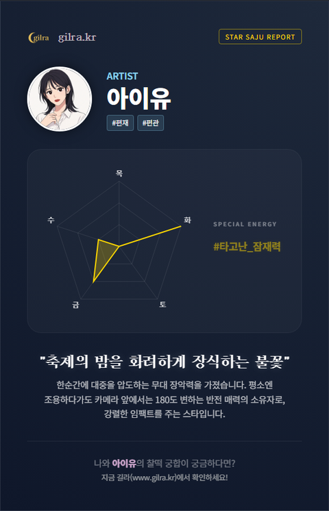 방금 인스타 보다가 아이유 사주 분석 뜬 거 봤는데