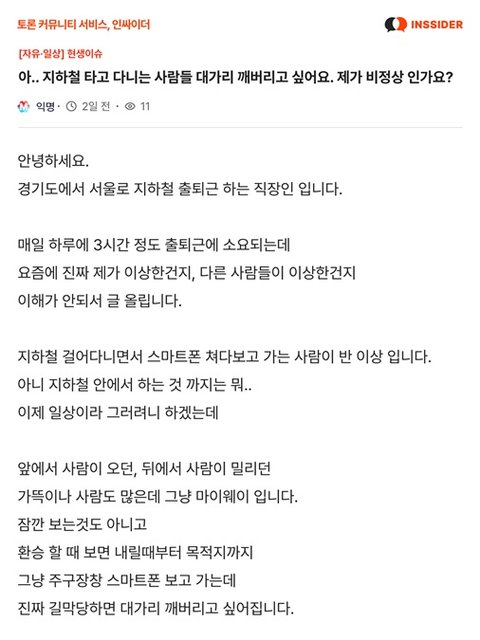 지하철에서 스마트폰만 보는거 나만 이해 안가나