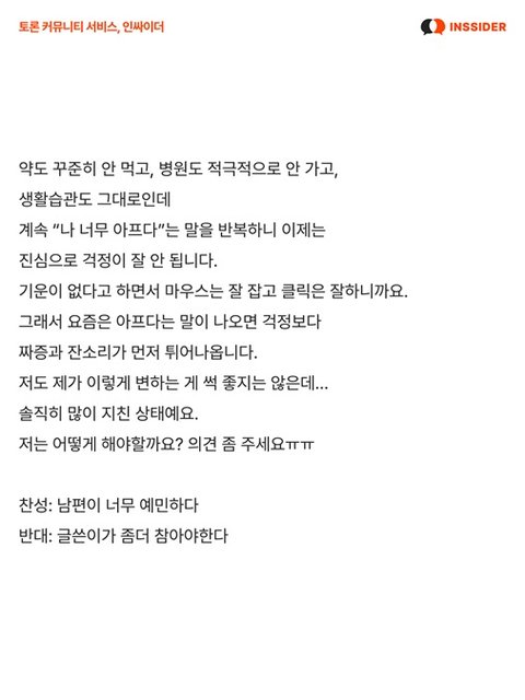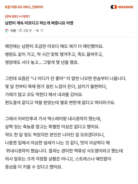 남편이 계속 아프다고 징징되는데 참아야하나