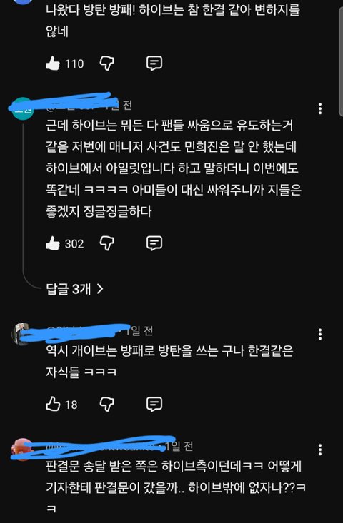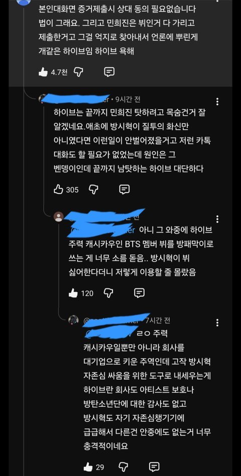 개저씨들아 너네가 욕할 대상은 민희진이 아니라 하이브니까 정신차려. 그리고 니네 여론조작 안 먹히니까 적당히 해