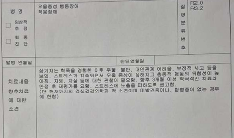 딸아이는 우울증과 적응장애 진단을 받고 치료 중입니다..