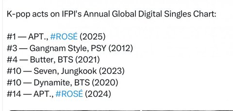 아파트 케이팝최초 연간 IFPI 싱글차트 1위