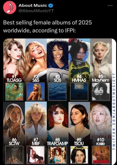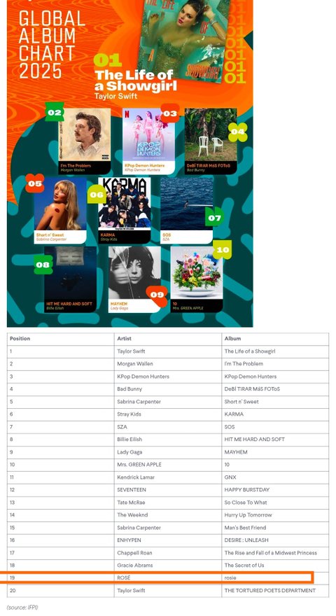 제니는 앨범 많이 팔았다고 언플 했어도 앨범 판매량 추적하는 앨범 세일즈 차트에 들지도 못했다는 바로 거기가 ifpi