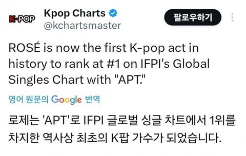 로제 아파트 전세계 메가히트곡이긴하네
