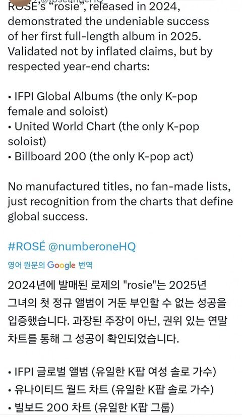 2024년 앨범으로 케이팝여솔최초 글로벌 앨범차트 진입함