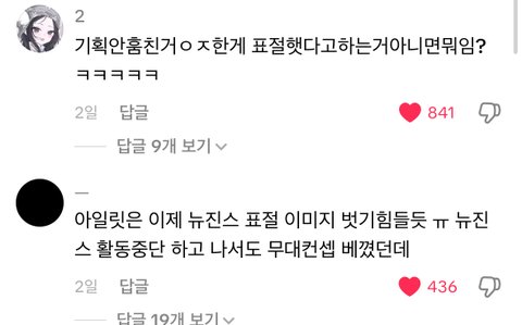 뉴진스만물설이 아니고 아일릿 느그는 진짜 따라하셨잖아요 ㅠ 여론바꼈으면 걍 피코 작작하고 닥1치고있어
