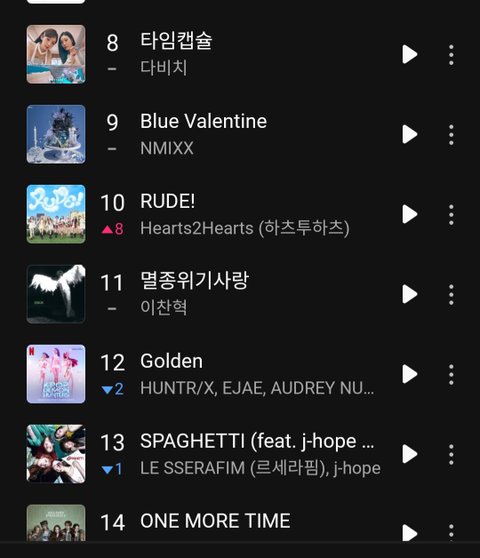 하츠투하츠 RUDE! 멜론 탑백 10위 진입