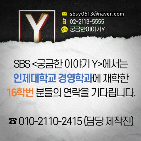 SBS에선 인제대학교 경영학과 16학번 분들의 연락을 기다립니다.