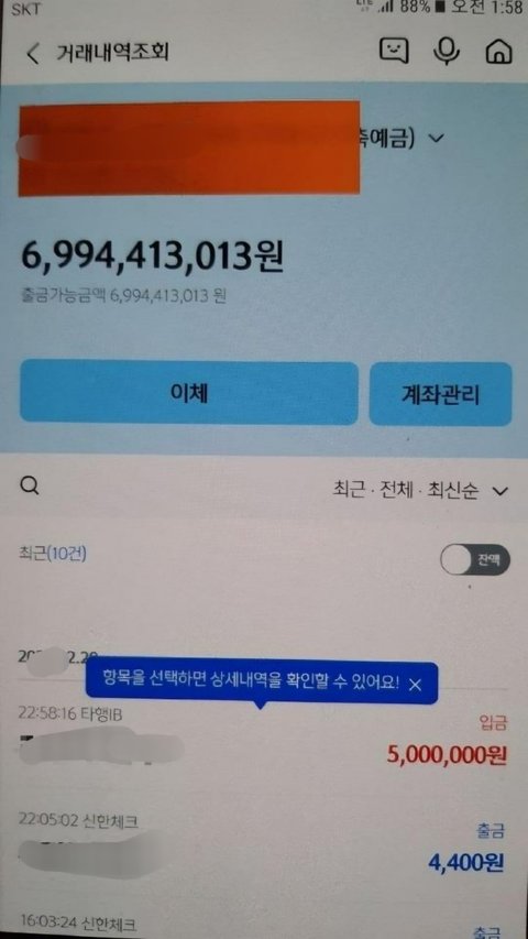 누가 입출금 통장에 69억을 놓냐 ㅋㅋㅋ 전청조냐