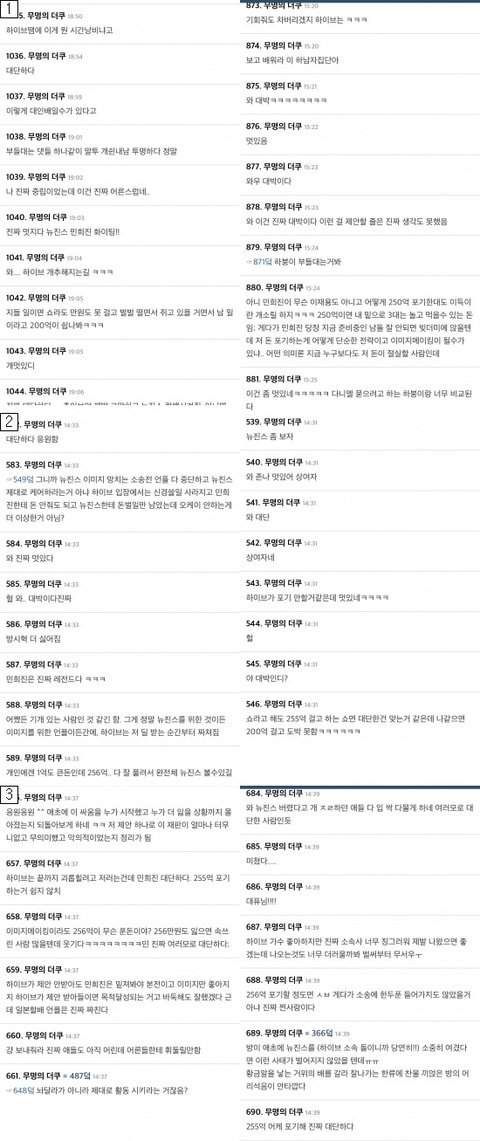 여자만 골라서 스텝밟는 펨코랑 여론 조작쉬운 네이트판만 하이브편인듯? 어제오늘 민희진 죽어라 까길래 여기만 여론이 왜이러나 했더니 대중들은 다 하이브 욕하고있어서 인스타, 유투브 가서는 찍소리도 못하고 네이트판에서만 죽치고있는거였구나. 역시 네이트판에서 까이면 잘됨 판까흥 또 인증