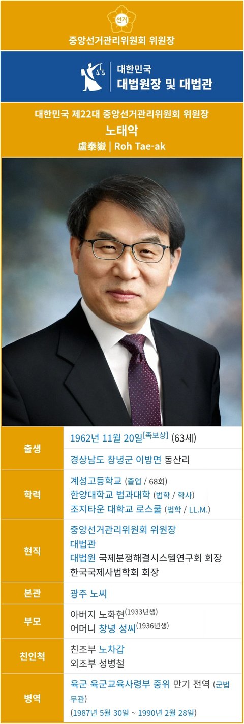 (사진2 설명) 노태악(盧泰嶽, Roh Tae-ak) 대한민국 제22대 중앙선거관리위원회 위원장 <출처: NAVER 나무위키>