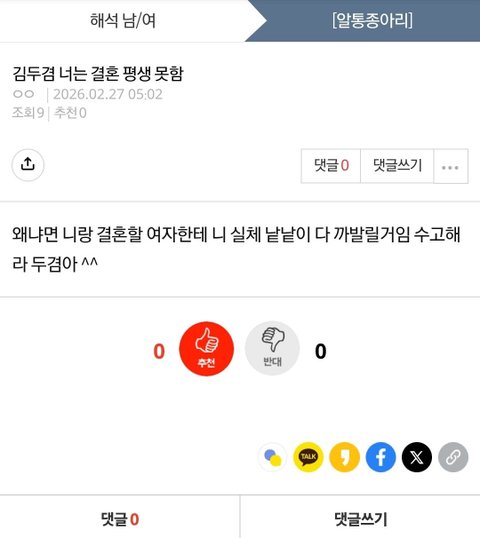정신병원이나 가라 좀 두겸이한테 실체가 어딨어 너한테만 있지 제발 창피한 줄 알아라 나이 스무살 많은 아저씨한테 가방이나 타 성형한 원가는 뽑아야할거아냐