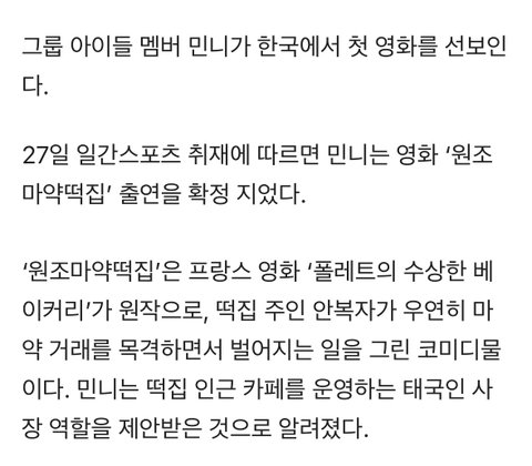 민니 한국 영화에 캐스팅 됐대