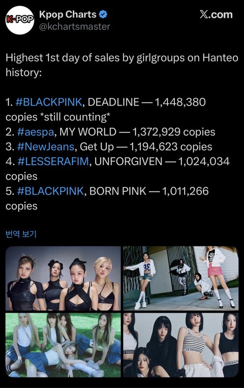 블핑 4시간만에 역대 걸그룹 첫날 판매량 1위 ㄷㄷ