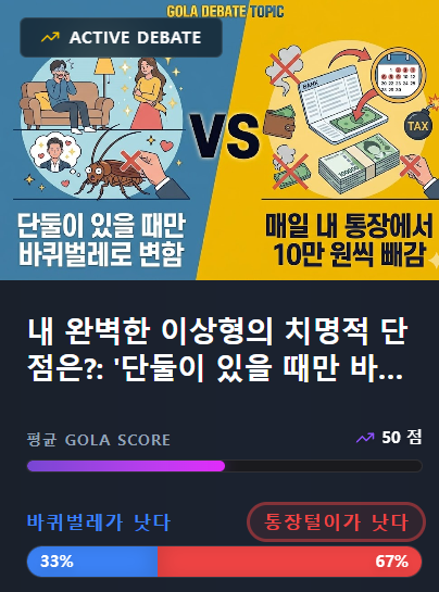 난 일단 통장털이 골랐는데 한달 300 만원이면 그냥 바퀴벌래가 낫지 않나 싶기도....