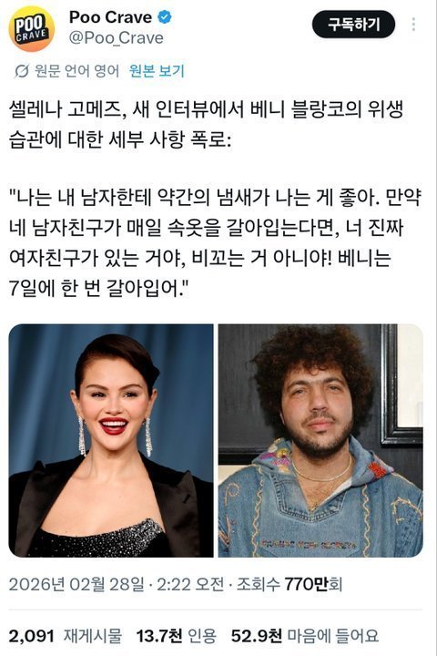 베니 위생상태로 욕먹자 샐레나고메즈 반응