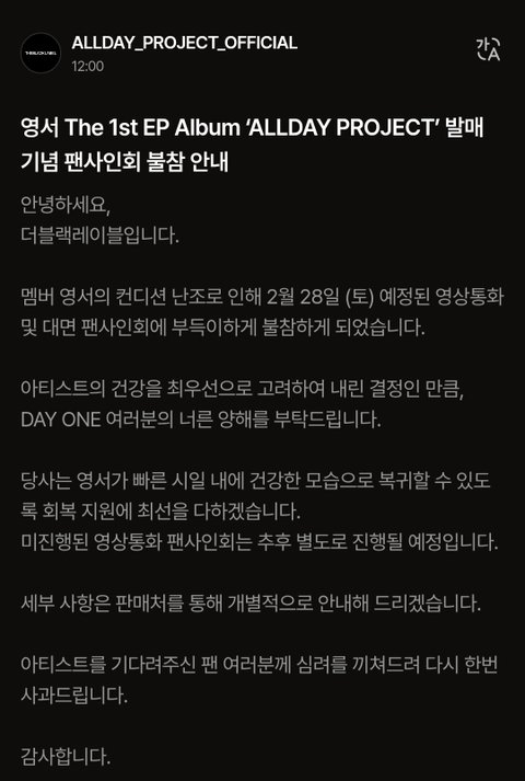 올데프 영서 팬싸 불참했는데