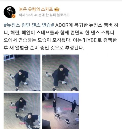 하니 해린 혜인 런던에서 연습중인가봄 웨이보에 누가 올렸음 저번에 뜬 목격담도 그렇고 확실히 셋은 런던에 있는거 같음