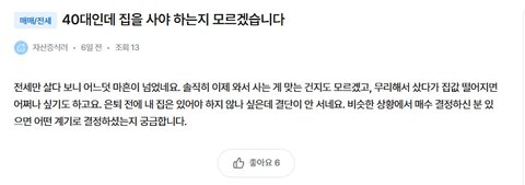 저는 아직 자가 없어서 요즘 걱정인데 저랑 비슷한 분들이 계신가요?