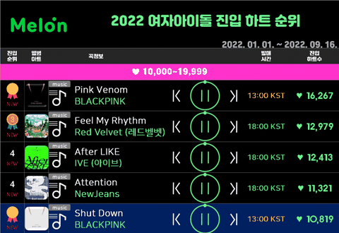 멜론차트 진입하트수 : 4세대 걸그룹 역대 최고기록 경신함 ㄷㄷㄷ