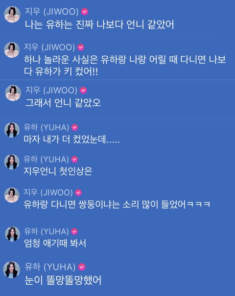 멤버들한테 부재중 전화 걸려있으면 둘다 서로한테 먼저 전화하겠다고 한 것도 그렇고 장기연습생활+언니라인이라 팀내에거 반장부반장 역할하면서 신뢰가 있는 것 같음