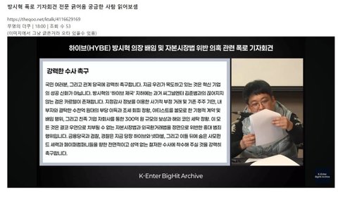 방시혁 합당한 처벌 꼭 받아서 정의가 존재한다는걸 보여줘