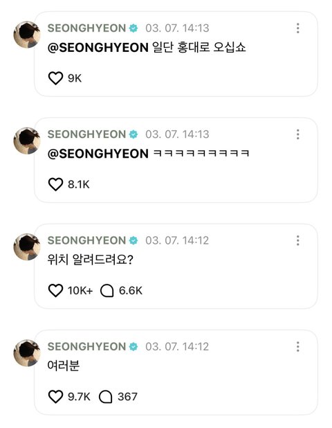 코르티스 성현이 팬들한테 위치 궁금하냐면서 홍대로 오라고