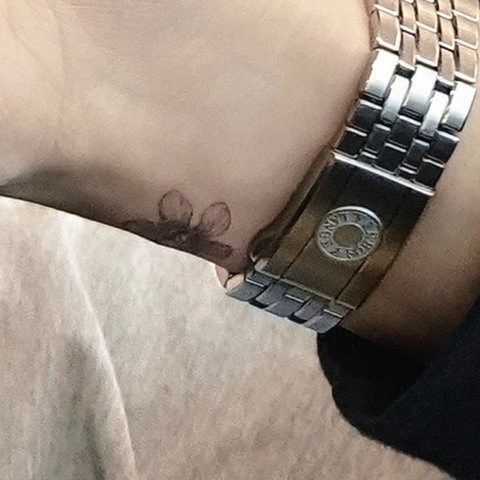 손목타투는 보인지 몇달 지났는데 귀뒤에 있는건 대체 언제 한거지 머리 긴지 꽤 돼서 팬들도 몰랐음
