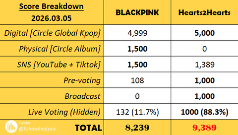 + 참고로 이번주 엠카는 블랙핑크 금요일 발매라서 3일치만 들어갔던거고 다음주 엠카는 투표 변수 없이 무조건 블랙핑크 1위 예정이야 어그로 끌릴까봐 씀