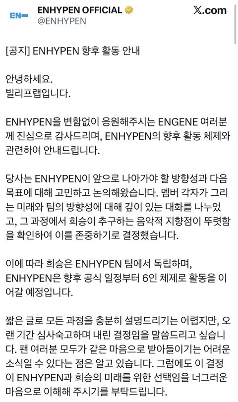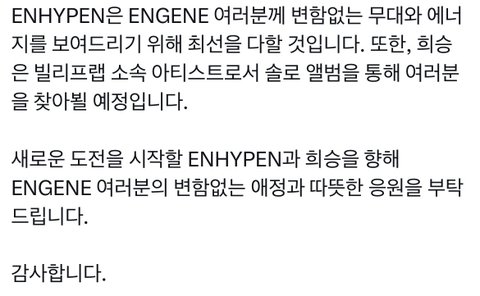 희승 제외한 6인만 재계약하고 희승은 재계약 안 했다는 거 같은데 솔로하려나