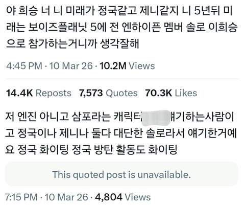 희승 엔하이픈 탈퇴 소식 나오니까 정국 팬들은 정국 방탄 탈퇴 더 바라는 분위기네