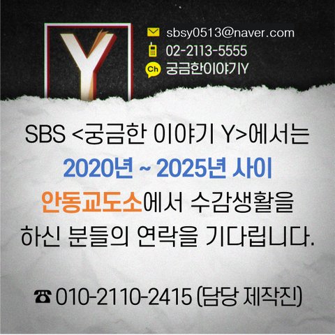 SBS에선 2020년 ~ 2025년에 안동교도소에서 생활하신 분들의 연락을 기다립니다.