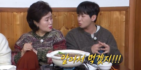1박 2일 촬영을 위해 저녁상 직접 차려주신 딘딘 어머니 ㅠ
