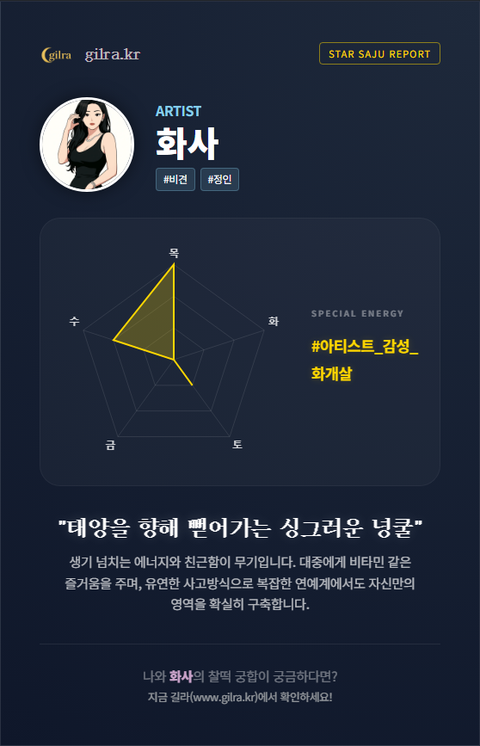방금 화사 사주 분석 뜬 거 봤는데 해석이 너무 흥미로워서 가져와봄.