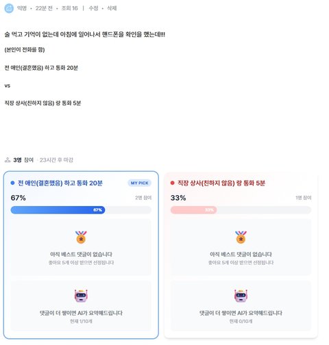 정말 선택 하라고 하면 저는 전 애인으로 갈게요....