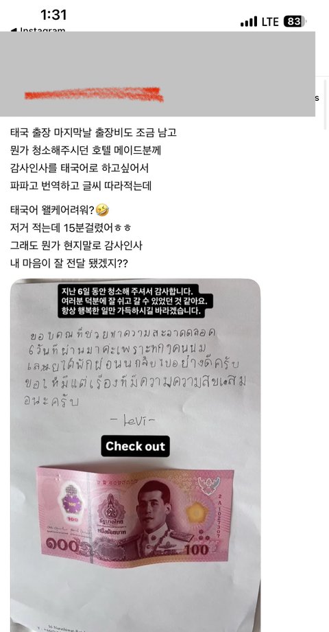 인스타 스레드 보다가 태국 호텔 메이드분께 팁이랑 편지 남기고 왔다는 글을 봤어요.