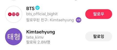 호비랑 정국이가 팔로하는거 보니 찐인듯 파딱은 인증절차때문에 시간이 좀 걸린대 드디어 김뷔 틱톡생겼네 좋다