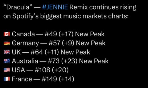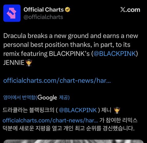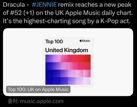 영국 오피셜 차트 피크에다가 빌보드 핫백도 제니 리믹스 발매 이후로 +50계단 상승함 ㄷㄷ