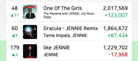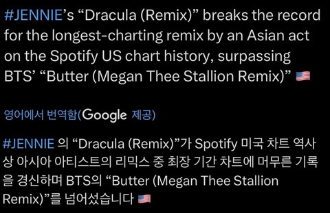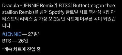 더 대단한 건 제니랑 리믹스 발매 전에 원곡 글포티 차트아웃이었는데 지금 원곡이 67위에 제니 리믹스가 60위임 ㄷㄷ