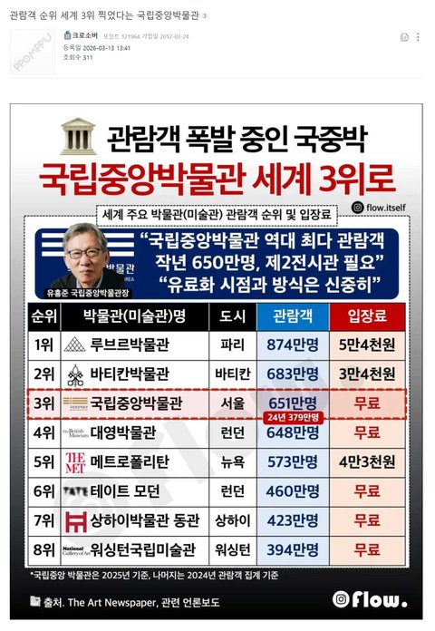 관람객 순위 세계 3위 찍었다는 국립중앙박물관