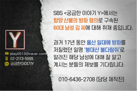 SBS는 울산 일대에 방화를 저질렀던 일명 ‘봉대산 불다람쥐’ 제보를 기다립니다.