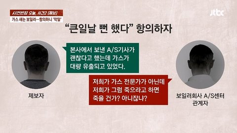2. 한국 가스안전공사가 심각한(폭발 위험) 가스 누출을 발견했고 AS기사는 잘못을 인정하며 사과