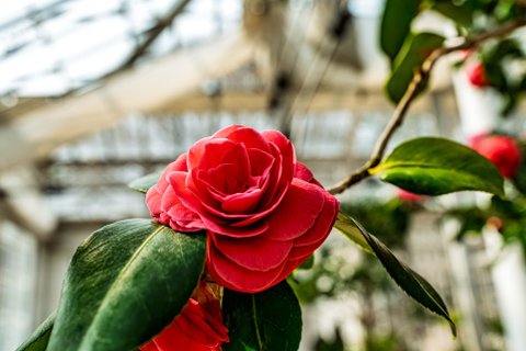 창경궁 대온실을 방문하면 지금 동백꽃을 볼 수 있습니다. 동백은 한반도 남쪽에서만 볼 수 있는 꽃으로 겨울에도 꽃을 피워서 동백(冬柏)이다.